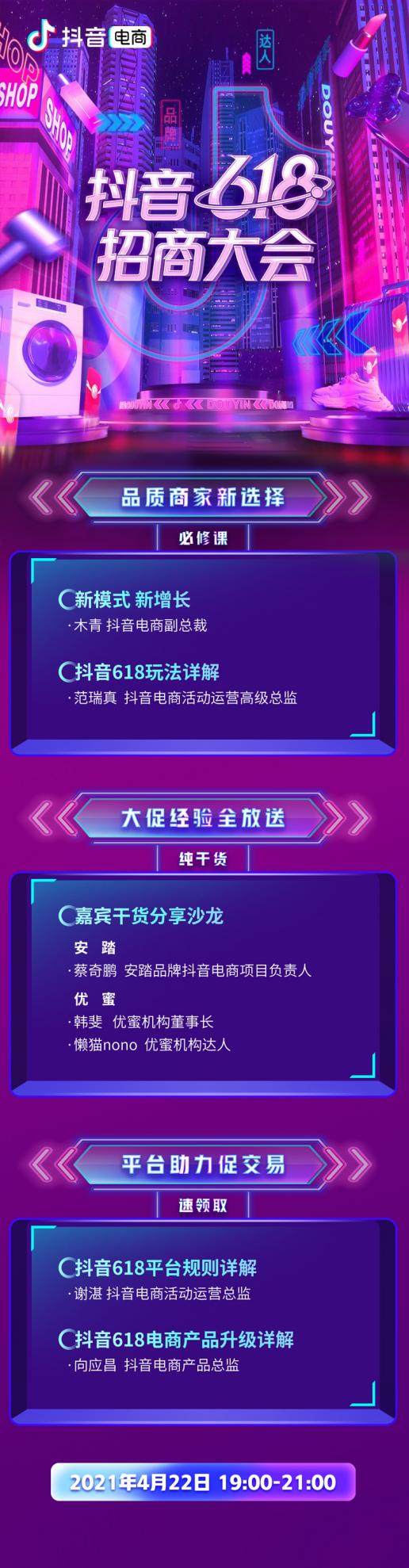 抖音宣布618招商大会将于4月22日正式开启,届时将由抖音电商活动运营高级总监范瑞真为大家详解抖音618的具体玩法。